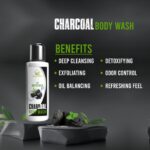 - Lather: Pour a small amount of charcoal body wash onto a loofah, sponge, or directly onto your hands.