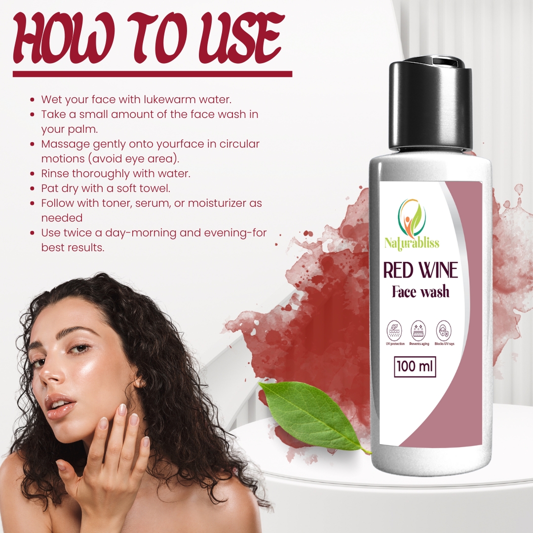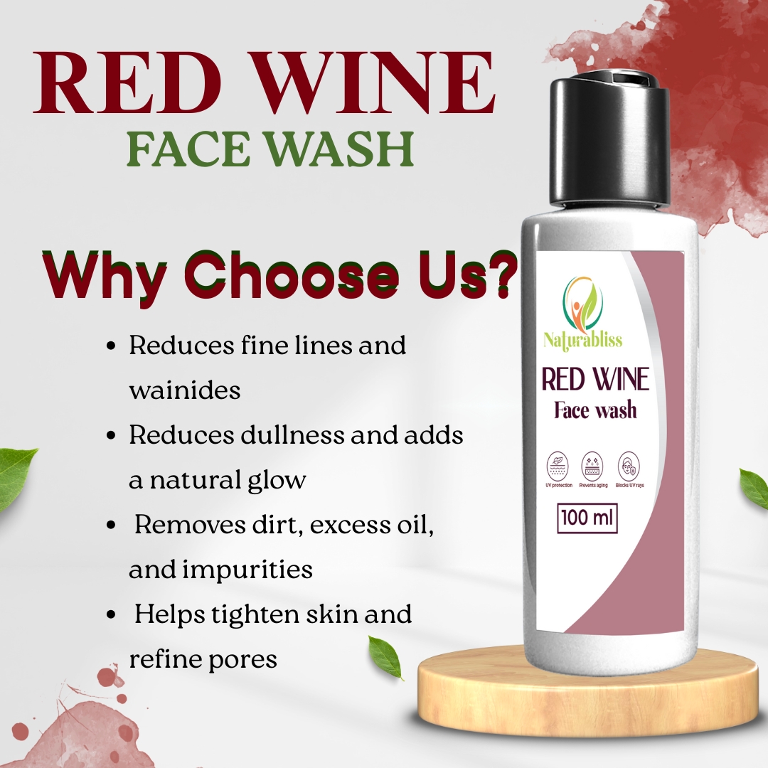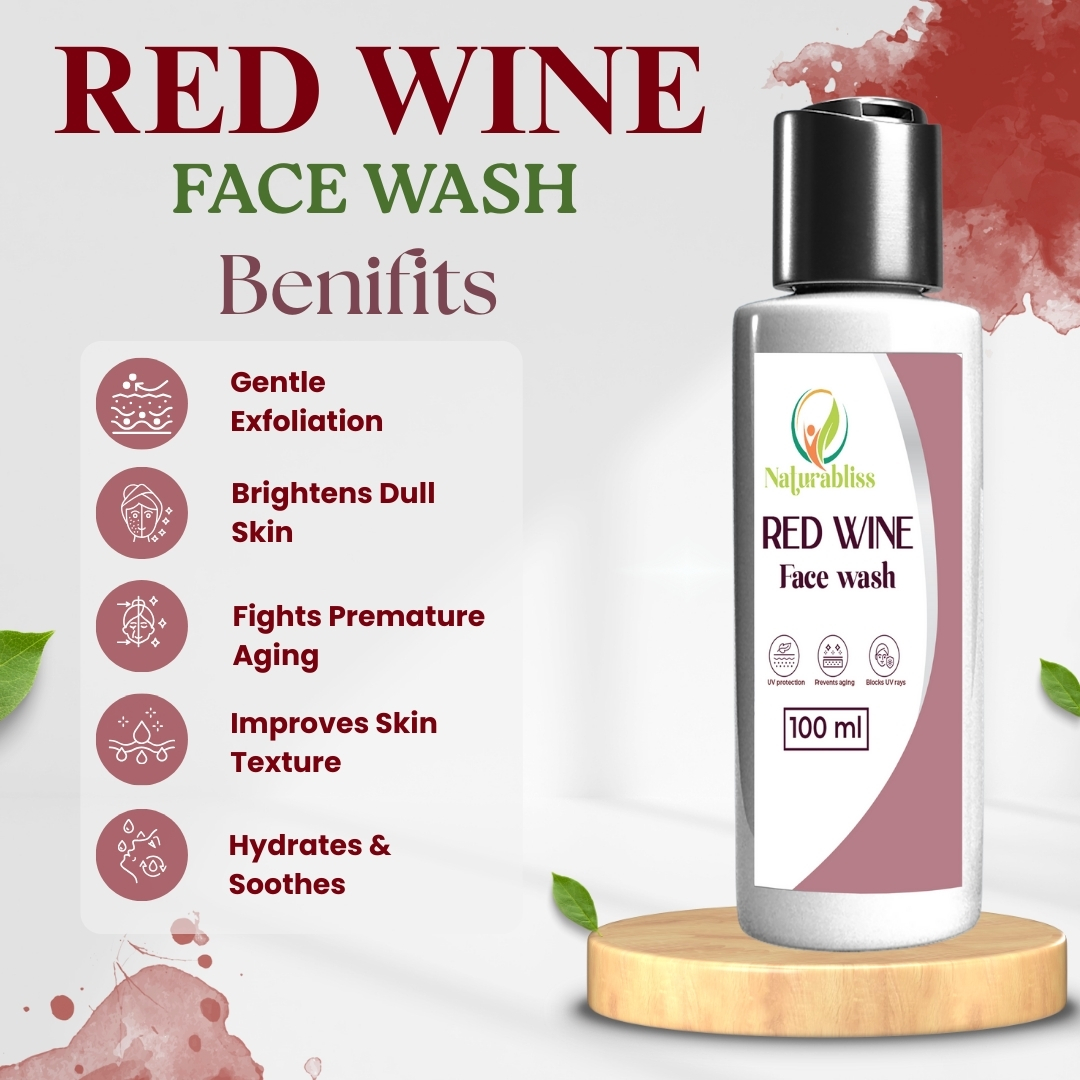 Natura Bliss Red Wine Face Wash for Men & Women 100ml | Natural Brightening & Anti-Aging Cleanser for Glowing Skin